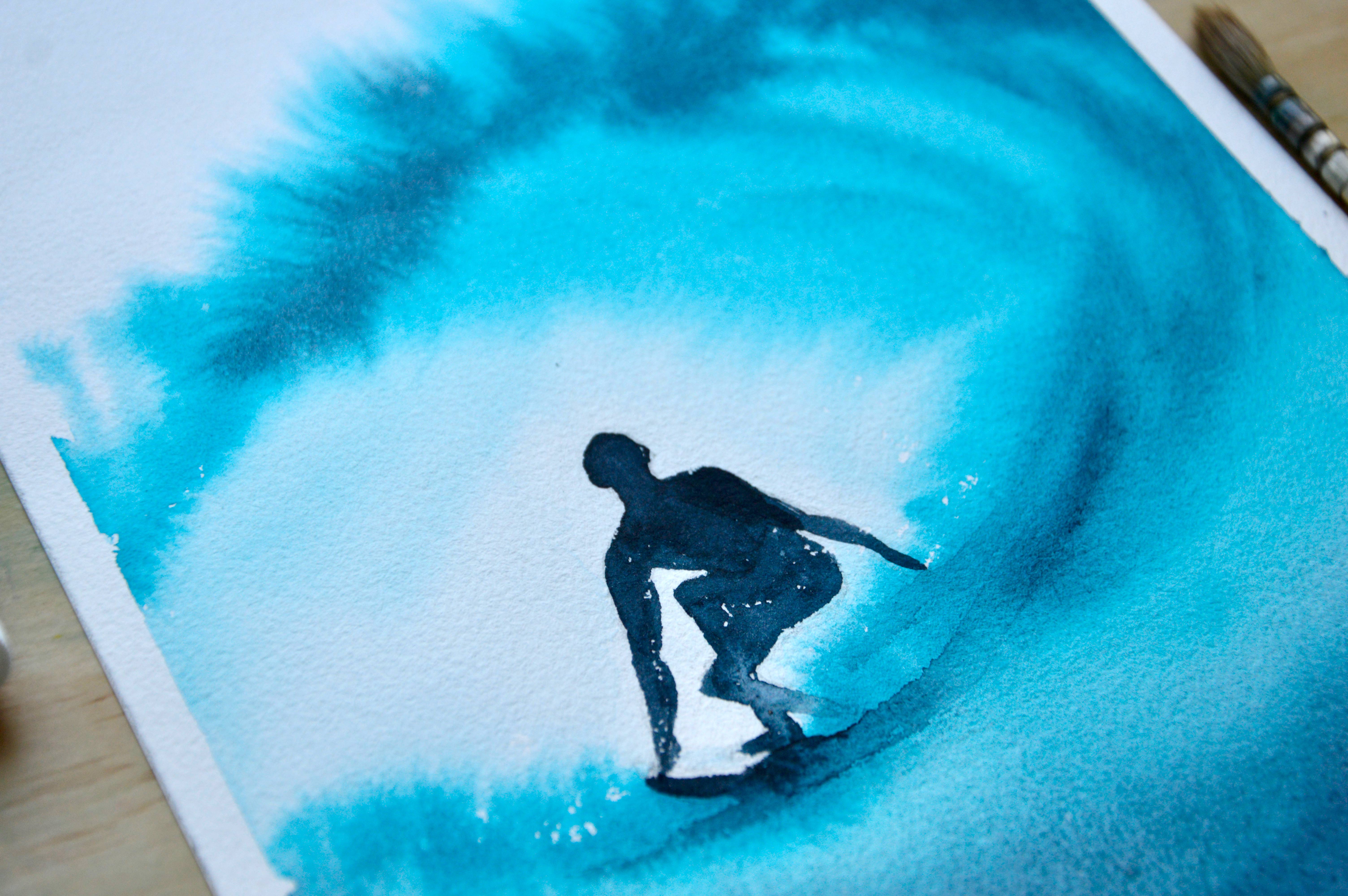 #55 Exploring Watercolor Techniques: Wet-on-Wet vs Wet-on-Dry for Beginners 🌟|watercolor surfing